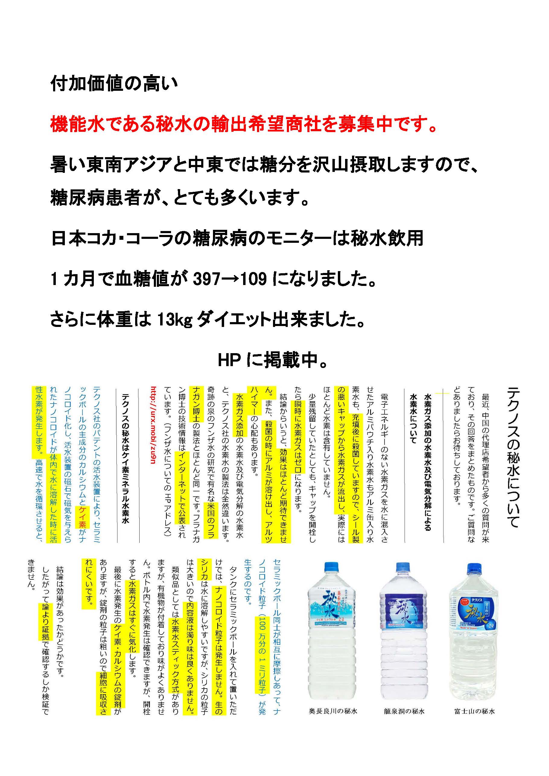 ( ※コカコーラでも、森の水を製造販売していますが、モニターの皆様の秘水の評判はとても良いです。)